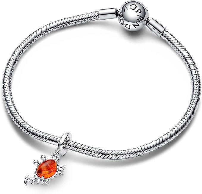 Charm della collezione Pandora Moments. Il charm in Argento Sterling 925 è Ispirato al granchio Sebastian amico di Ariel, e presenta dettagli realistici, come le sfere che formano gli occhi, sei zampe e una chela pendente da un lato. Il corpo arancione in vetro di Murano è racchiuso sul retro da un motivo ondulato con lavorazione openwork, che brilla attraverso il vetro di Murano e fa risaltare il colore caratteristico di Sebastian. L'anello passante a forma di chela di granchio presenta il logo Pandora inciso su un lato e il logo Disney sull'altro. Tieni Sebastian accanto a te come simbolo di amicizia. Questo gioiello verrà spedito nella scatola originale e garanzia ufficiale