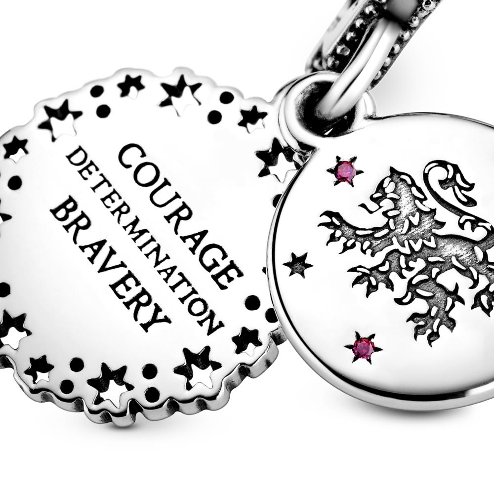 Grifondoro, la casa di Harry, Ron, Hermione e di illustri maghi come Albus Silente e Sirius Black, e' il simbolo del coraggio, dell'audacia e della nobilta' d'animo. Il charm Grifondoro della collezione Harry Potter cattura l'essenza di questa casa straordinaria. Composto da un pendente doppio, l'emblema di Grifondoro e' circondato da stelle incastonate con maestria in pietre di zirconia cubica rosse tagliate a brillante. Il gancio, dedicato a ogni casa di Hogwarts, presenta la forma dello stemma della scuola, rappresentando un collegamento speciale tra il mondo di Harry Potter e chi indossa questo gioiello. Indossando il charm Grifondoro, puoi portare con te l'eredita' di coraggio e nobilta' d'animo, ricordando sempre le straordinarie storie e i valori di questa casa