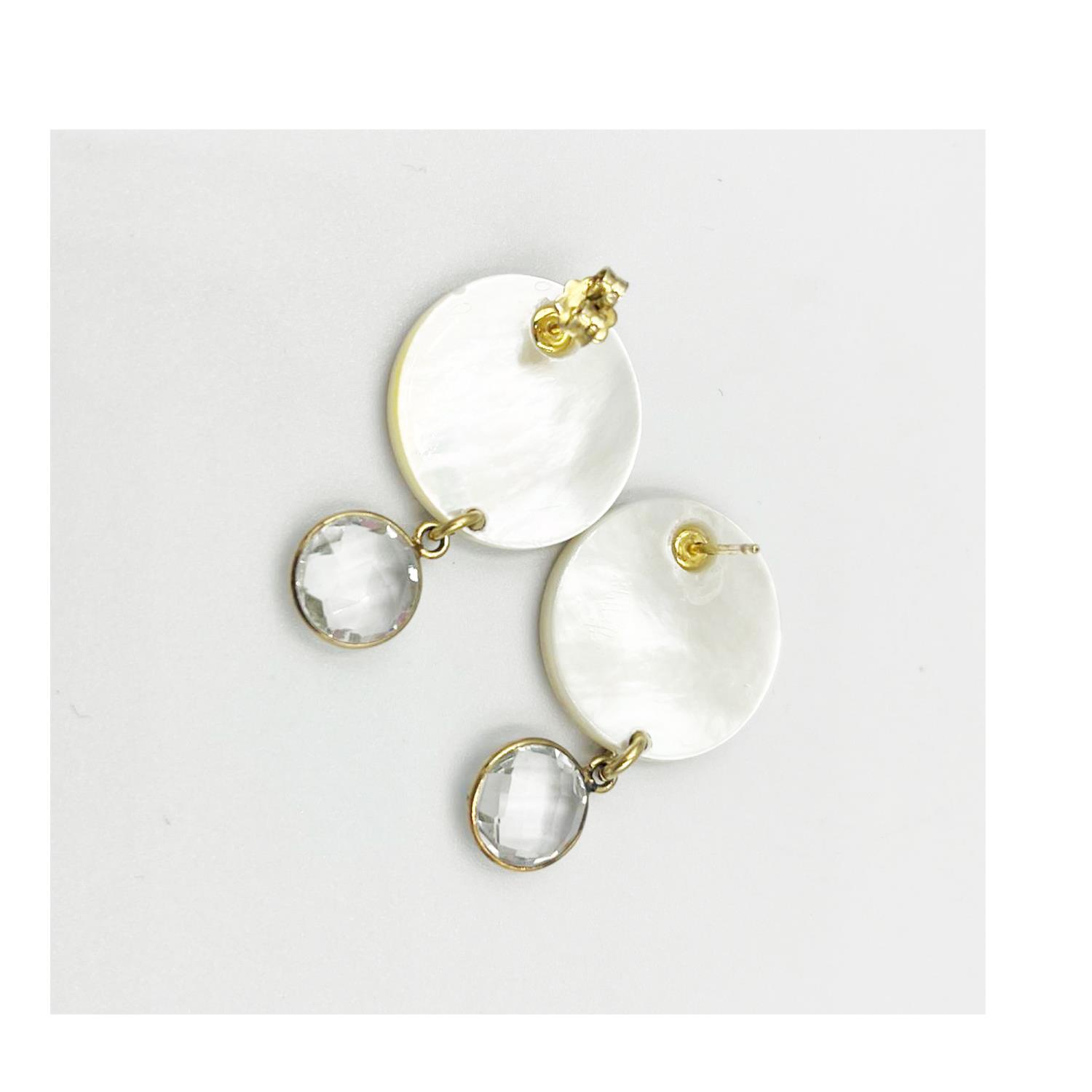 Orecchini in madreperla naturale con pendente in pietra idrotermale trasparente, materiale argento 925 dorato. Incisa frase "Certe notti la strada non conta...quello che conta è sentire che vai" .