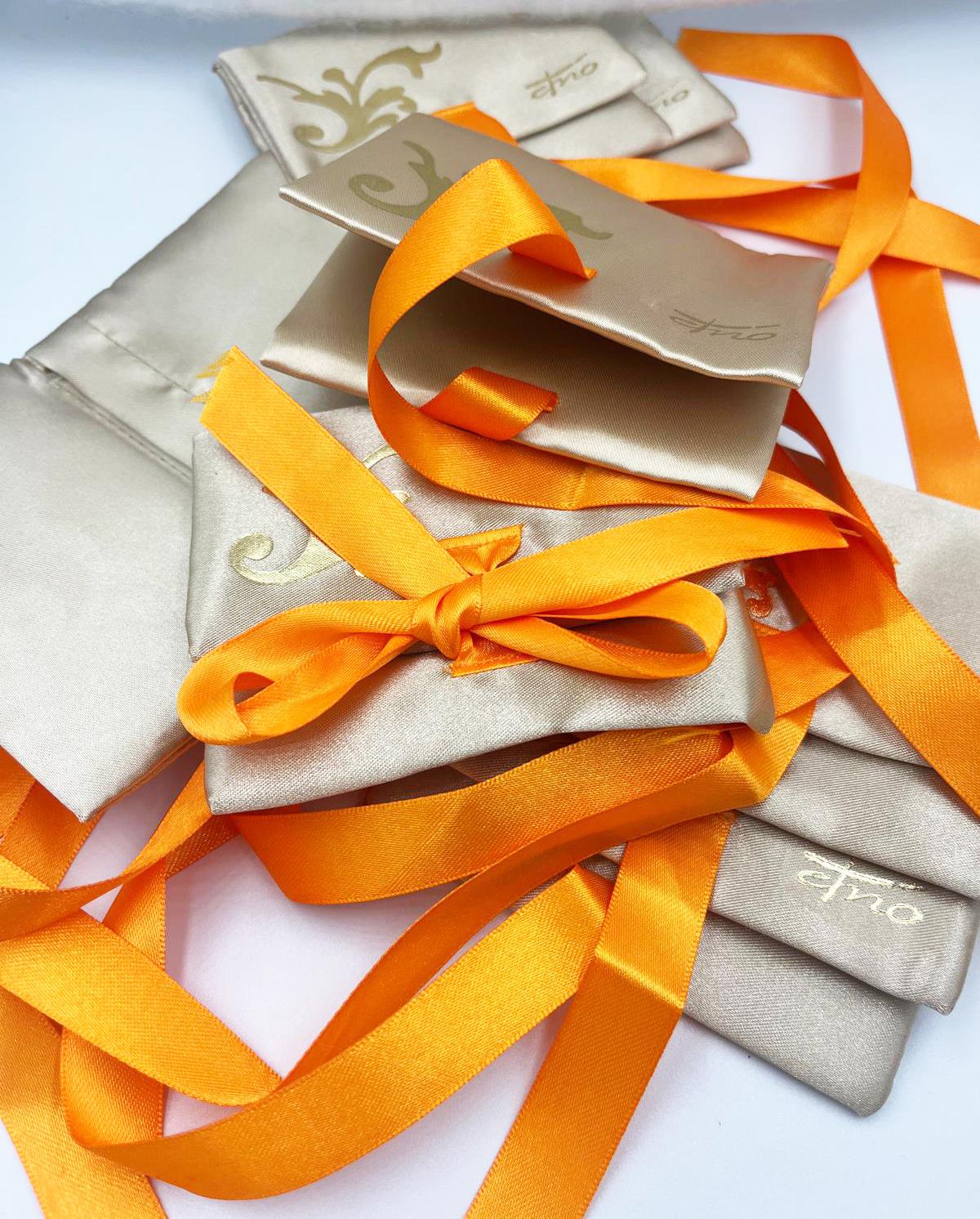 Confezione sacchetto morbido in tessuto con nastro logato Etnò.